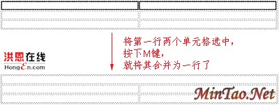 先看看这条红线是怎么做出来的。在第一行第一个单元格内单击,然后向右拖动鼠标,将第一行的两个单元格选中,按下M键