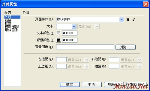 点击“修改”菜单选“页面属性”。系统弹出页面属性对话框(如下图)