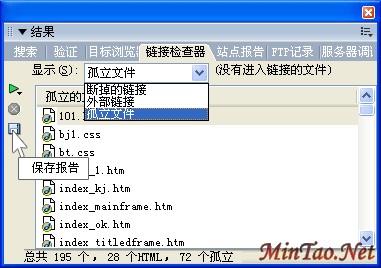 下图是检查器找出的孤立文件,这些文件您的网页没有使用,但是仍在你的网站文件夹里存放,上传后它会占据有效空间,应该把它清除。清除办法是:先选中文件,点Delete键,确定。这些文件就放在“回收站”。