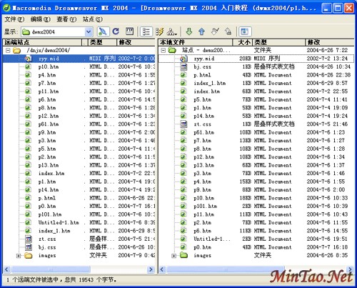 点击 ,Dreamweaver MX 2004将所有文件复制到您定义的远程文件夹。