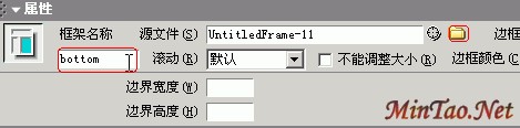 3.在属性面板上,为新框架命名,并且点击“浏览文件”,选择一个文件作为框架的“源文件”。