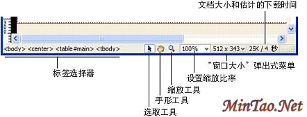 "窗口大小"弹出式菜单的右侧是页面(包括全部相关的文件,如图像和其它媒体文件)的文档大小和估计下载时间。