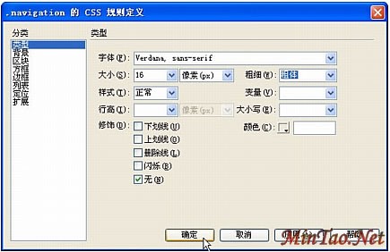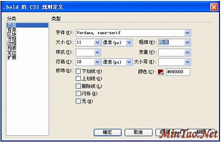 在"CSS 规则定义"对话框中,执行下面的操作:
