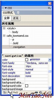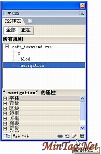在"CSS 样式"面板中,确保选中了"全部"模式,选择新的 .navigation 规则,然后单击面板右下角的"编辑样式"。