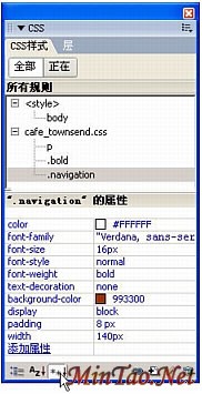 现在,您将使用"CSS 样式"面板向 .navigation 规则添加更多属性。