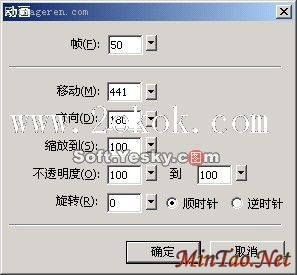 9) 为矩形添加动画效果,动画的参数设置如图6所示,如果弹出警告框询问用户是否添加新的帧,只要选择“确定’即可。