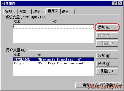 用鼠标右键单击页面,选择“页面属性”,弹出“网页属性”对话框。单击“自定义”选项卡 ,这里并没有我们要的功能。