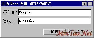 点“添加”按钮,弹出“系统Meta变量”对话框,输入一个变量,“名称”为“Pragma”,“值”为“no-cache”,单击“确定”。