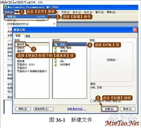( 1 )新建文件,操作如图 36-1 所示。
