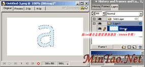 4.原位克隆字母a(Ctrl+Shift+D),去掉内发光设置。 Modify-->Flatten Selection(Ctrl+Alt+shift+Z)转字母为位图。 按住Ctrl键,点击位图所在图层得到选区。