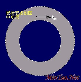 2、把该圆环转换成位图,Modify>Flatten Selection。然后按住Ctrl键不动,点击圆环所在图屋。得到圆环的选区。松开Ctrl键。此时注意了,在工具箱中选中工具,然后鼠标移动到选区内,此时鼠标变成如下图所示的时候,我们就可以移动选区。把选区向右上方移动一定的距离。