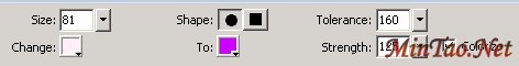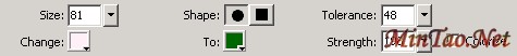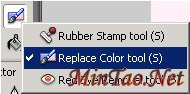 首先从工具面板上选择Replace Color Tool,选择此工具后,会自动进入位图状态,相应的属性面板显示了此工具的一些参数。