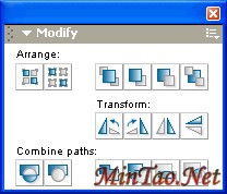 将FW操纵物件常用的如变形,排列,对齐,组合,改变路径选项都集合在了这个修改面版组中,对物件做相关修改时非常方便。