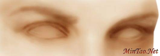 3.换支稍小的笔刷,在同一层,加深眼眶和眉毛。用减淡工具(压力20模式“中间调”)提亮鼻梁和额头(图3)。