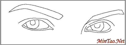 1.新建图层用来打线稿,用钢笔工具画出眼睛和眉毛的形状(如果是半侧面的话,要注意透视关系)如图1。