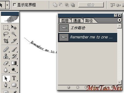 会发现有形状一样的两条路径并存 这是为什么呢? 因为路径文字的原理就是:将目标路径复制一条出来,再将文字排列在其上 这时文字与原先绘制的路径已经没有关系了 即使现在我们删除最初绘制的路径,也不会改变文字的形态 同样,即使现在我们修改最初绘制的路径形态,也不会改变文字的排列 这点至关重要 还有: 文字路径是无法在路径面板删除的,除非在图层面板中删除这个文字层