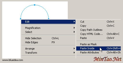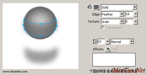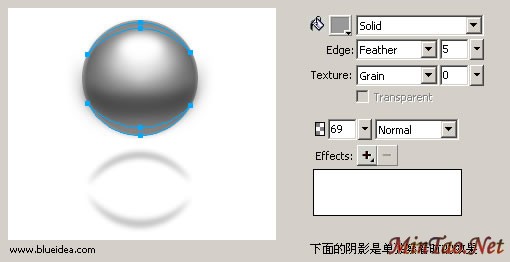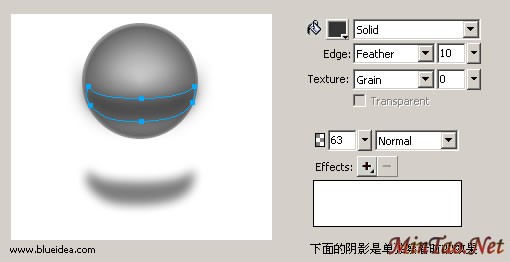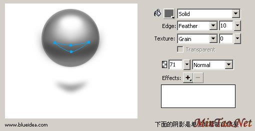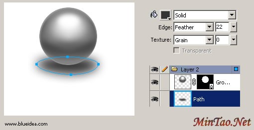 大家注意到 feather的使用,往往会有超出小球的或者其固有形状的时候,这时候,合理的运用Mask就很重要了,在 fireworks里,我们可以简单理解为,粘贴到物体内。