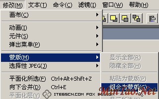 8、同时选中矩形路径和上层的位图对象,选择菜单“修改|蒙版|组合为蒙版”命令,组成遮罩组。