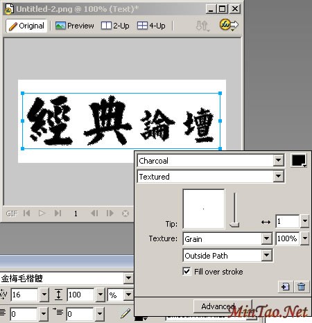 经过几番实践 发现Fireworks是可以达成这样的文字边缘毛糙的效果 而且变化也不一而足 各有别致的风格