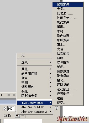 到这一步就可以做一点实质性的东西了。选择eye candy 4000滤镜,选择倾斜效果。