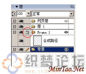 3、到图层面板里,选中这个图片框,取消锁:如图示: