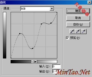 第四步: 选效果/调整颜色/曲线................参数设置如下: