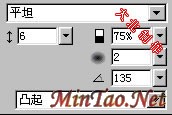 第三步: 选效果/斜角和浮雕/内斜角..........参数设置如下: