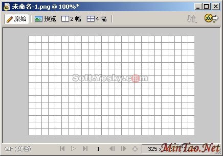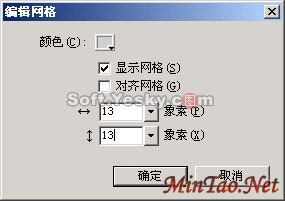 1) 新建一个大小为325×195的文件,点击“视图”菜单,选择“网格-显示网格”用以打开网格方便的编辑。接着选择“网格-编辑网格”,这时跳出“编辑网格”对话框,在其中设置网格颜色为#CDCDCD,设置网格的宽高均为13,如图1所示,得到图2所示的图像。
