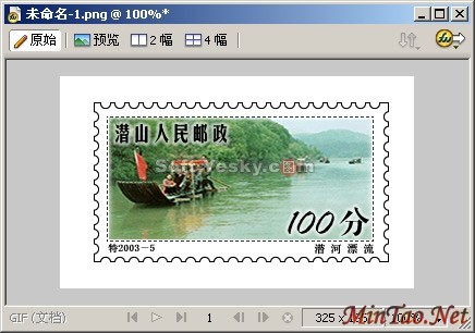 看着一套套精美的邮票,有时候会想:是不是自己也可以来设计一张属于自己的“邮票”,把喜欢的图片放到上面去,那岂不是太好了?其实Fireworks就能实现这个愿望,今天咱们就来看看怎么样用它制作一张精美的“邮票”。完成效果如下。