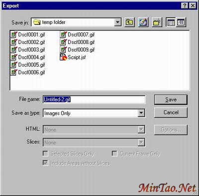 1,选择File -> Export to可以直接进行输出 2,选择Images Only只输出图象 3,选择html and images可输出图象和html文件 输出一个区域的图象 1,选择工具条上的输出区域工具,在图上画出需要输出的区域范围 2,双击输出区域,会跳出输出预览窗口,在输出预览窗口内可以调整图象输出的设置 3,最后按export按钮就可以输出图象了 输出切片 将一副大的图象使用切割工具分成一个个小的切片以后,你就要把这些切片输出。 1,选择File -> Export 2,在Slicing下有几个选项 None:忽略所有的切片对象,输出成当前格式的整幅图像。 默认的设置是:Export Slice:输出切片包括所有的行为设置 Slice Along Guides:输出切片,但忽略所有该对象的行为设置 如果要只输出选中的一个或几个切片,可以勾选下面的Selected Slices Only 输出flash格式