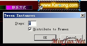 8、 选择这两个实例,在右键弹出菜单中执行Symbols>Tween Instances创建变形动画,设定插入帧数为6帧,并勾选Distribute to Frames分布到帧,如下图所示: