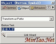 上面我们做好的导航条外观虽然不同,但它们却有着相同的文字内容,我们需要将它们修改为各自的内容,并设定每个按钮对应的链接地址。 1、 打开Object面板,选择第二个按钮实例,将Object面板上的Button Text改为“企业人才”。