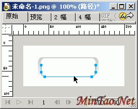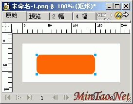 新建一个文件,背景色自定。使用圆角矩形工具,在编辑区绘制一个圆角矩形,矩形宽120象素,高40象素,矩形圆度为50。