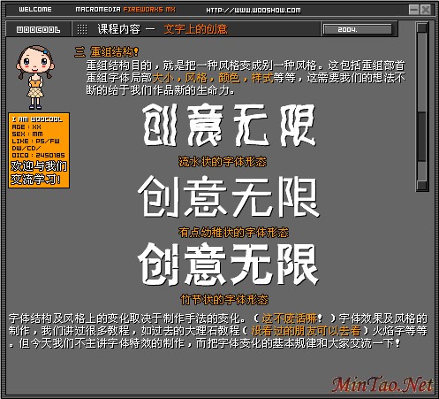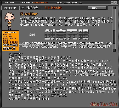 文字上的创意主要讲的不是制作方法而是制作理念。希望大家举一反三。我也好跟着学。