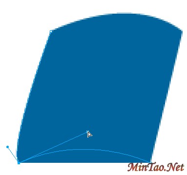 6、拖动左上方的调节手柄,通过调整其长度及其方向做出上侧边缘的圆弧效果,如下图所示。