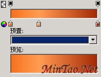 12、选中矩形对象,将填充方式设定为渐变填充方式里面的线性渐变填充,在弹出的颜色渐变的设置框中将填充颜色从左到右依次设置为“#F77521--#FF9E52--#A52C08”,具体设定效果如下图所示。