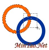 5、选择选取框工具,按住ALT键的同时,在你想保留原状的那个结合出画一个矩形选区,即在当前选区中减去刚才所画的矩形区,注意观察在选取的同时鼠标指针旁有个-号: