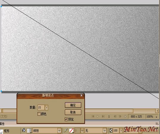 1.先建立一个宽800高310的文件(我是这样做D,你也可以自由设置)。在画一个同文件大小的矩形。属性为:充填(灰色)充填类别:(线性渐变)。在点效果→杂点→新增杂点。属性为(数量15)得到效果如图: