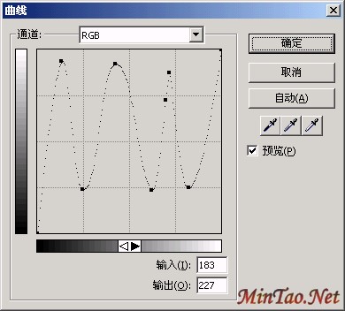 14、接下来可以选中位图对象,然后选择属性面板上的效果菜单中的“调整颜色 | 曲线”效果命令,在本例中,进行了如下图所示的设定。