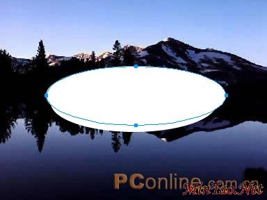 现在该来画水波的涟漪了。用“椭圆形”工具在“层1”里画两个以白色为实心填充的椭圆形/