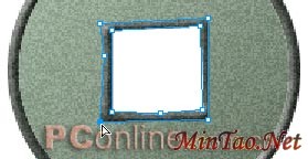 把这个矩形的组合对象移到钱币的正中央,然后用“部分选择”工具对这一对象的路径节点进行适当的移动,也可以使用“钢笔”工具添加一些节点后再用“部分选择”工具进行调整,使其达到如图般的外形效果。
