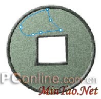 既然是古钱币,那在钱币表面就少不了有些锈迹。而锈迹最多的地方就是钱币的左上、左下、右上和右下这四个位置。为了模仿这四个地方的锈迹,我们先用“钢笔”工具在钱币的左上位置较随意的圈画一个封闭的路径: