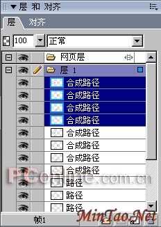 按住Shift键不放将这四个字同时选中后再复制一份。此时在“层”面板中可以看到,被复制出来的四个文字对象处于所有对象层的最上端,如图。