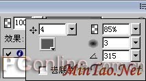 把画布上的所有对象同时选中后使用“修改—组合”选项,然后为这个对象使用“投影”特效,投影色为# 575757,其它各项设置如图: