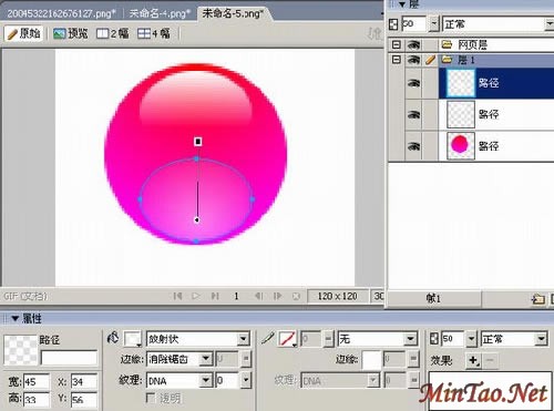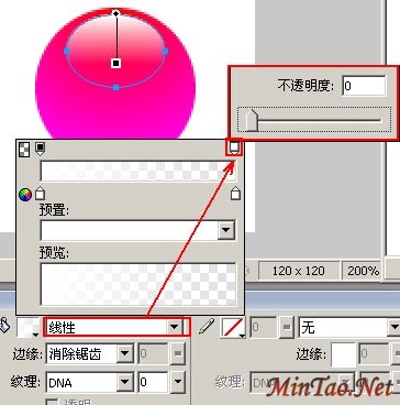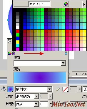 1.打开FW,在工具栏中选择 “椭圆工具”,在“属性对话框”中设置填充类别为“放射状”,在填充颜色的选择里选择颜色。