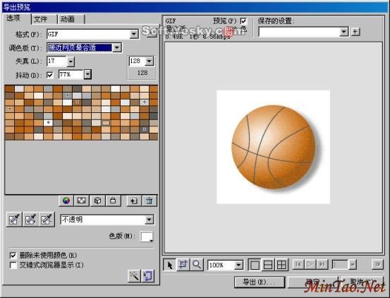 调色板——选择图像所使用的调色板。调色板中的颜色越少,图像中的颜色也越少,输出的图像文件也就越小。