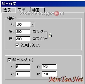 导出区域——选择该项后可直接在X,Y栏中输入起始坐标,在W,H栏中输入宽、高度。此时,在图像的预览区中,图像四周会出现六个控制点,通过拖动这些控制点也可以设定图像的导出区域。