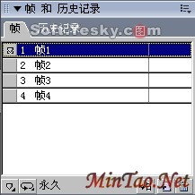 如果我们现在打开“帧”面板的话,就可以看到该面板下已自动为按钮元件生成了四个帧,如图8—03。但此时只有第1帧中有按钮图像,其它三帧均还没有任何内容。