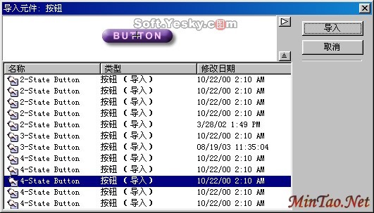 点击“导入按钮”则可以从Fireworks的按钮元件库中直接选取一种按钮进行导入,如图8—04。