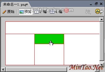 此时,按钮的四个鼠标事件都有了,点击“完成”按钮后回到工作区中的“原始”选项窗中。我们可以点击紧挨“原始”选项窗右边的“预览”窗(或按F12键启动浏览器)查看测试刚制作的按钮,如图8—08。